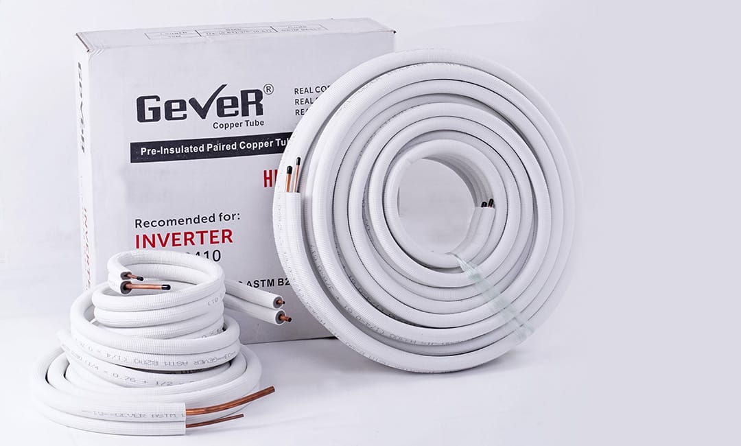 GEVER Pre-Insulated Coppertube merupakan produk pipa refrigerant kualitas tinggi yang dirancang untuk memenuhi kebutuhan instalasi pendingin udara (AC) dan refrigerasi. Diproduksi dengan standar Internasional ASTM yang ketat, memiliki daya hantar panas yang sangat baik, mampu meningkatkan efisiensi sistem pendinginan. Dengan material tembaga murni untuk memberikan ketahanan tinggi terhadap korosi dan tekanan.